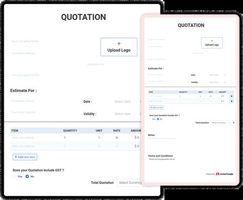 Quotation Online Making - Send email & download pdf, no watermark with online quotation generator. Online quote generator — make professional quotes in 3 min for free. Build estimates for clients easily using our quote template. Use customize or readymade templates and download without watermarks. Designhill’s online quotations maker provides you with endless customization options to create professional quotations for your clients.